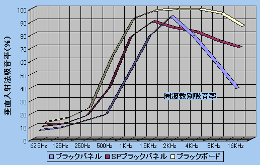 オーディオ業界で販売されているであろうこれらの商品については様々な謳い文句を並べて販売されていると思われます。 当社の製品は現実的に効果が出る事を前提となる企業用ですので、周波数別吸音特性などの詳細なデーターを公開しております。 主な基礎 吸音材:音を吸収します。 制振材:振動エネルギーを分子レベルで低下させ発生する音を小さくします。 ブラックパネル 吸音材と制振材を合わせたのが特徴。 制振材は単体でもご用意しております。 吸音材であるスポンジ状の内部に金属粉のようなラメを塗しておりインテリアにもマッチすると思います。 この吸音部分の厚みは20mm。 この吸音材に制振材1.5mmをベースにし吸音と制振、更に防音の3パターンを兼ね備えた画期的な吸音制振パネルです。 SPブラックパネル この吸音材は厚みに比例し吸音率が上がる特徴も備えているためブラックパネルを更に強力にしたSPブラックパネルをご用意いたしました。 吸音材の厚みを20mmから30mmに変更し、更に制振材と防音材の間に厚み0.2mmのアルミニウムを挟むことでブラックパネルよりも制振性能、吸音性能、防音特性、全てにおいて強力にUPしております。 ブラックボード ブラックパネルシリーズとは全く別の材質を採用。 吸音材の特性は最も強力です。 制振材などの組み合わせでは無く、単体素材で構成されておりスポンジ状ではなく表皮があるために汚れが拭け、更に耐久性が優れております。 約32mmピッチで6mmの穴加工を施しているために吸音性能が優れて下ります。 製品の比較データー。 8KHz以上は推測です。 ![]() 2製品(ブラックパネル・SPブラックパネル)の防音レベルです。 ![]() 強力制振材 ブラックパネルで使用されている制振特性の物より更に強力にしたSPの方で使用されているタイプをご用意致しました。 特性につきましては以下に公開している特性よりも強力になっております。 制振材は、振動により音が発生する場所に張り付け、振動の周波数を変えて振幅を下げることで音を下げます。 制振材は全面に張る必要はなく、振動の激しい部分にのみ張ることで音を減少できます。 以下はブラックパネルで使用されている制振材の特性です。 単体販売の強力制振材やSPブラックパネルの物は更に性能がUPしております。 ![]() |