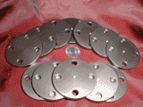 受け皿(スペーサー・ピンポイントベース) 義経のボールと同じ材質SUS440Cを更に高熱焼入処理をした物を採用いたしました。(標準)54mmX5mm・(特注)90mmX5mm 価格・在庫数は1セット4枚単位 上から、標準サイズ・特注サイズ 単品販売OK! |